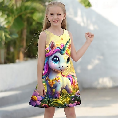 FILLE 3D Licorne Robe Sans manches Été Printemps Vacances Quotidien Fête Princesse Beau Doux Enfants 4-12 ans Robe Décontractée Robe trapèze Mi-long Coupe régulière