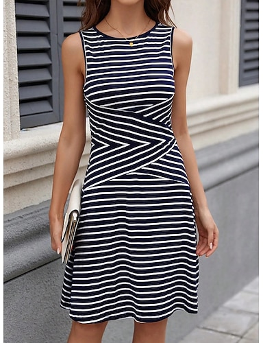 Femmes Robe Longueur Genou Robe Décontractée robe rayée Robe T-Shirt Élégant Mode Quotidien Vacances Coupe régulière Rayé Sans manches Col ras du cou Bleu Noir Vin Été Printemps