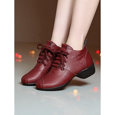 Chaussures de danse pour femmes en cuir bordeaux - talons confortables à lacets pour l'entraînement aux danses de salon, latines et jazz