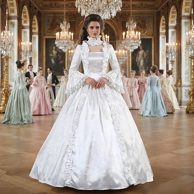Robe Victorienne Médiéval 18ème Siècle Longueur cheville Longue longueur Robe Costume de fête Bal Masqué Grande taille Normal Personnalisée Patchwork Robe de bal Déguisement Femmes Soirée Bal de