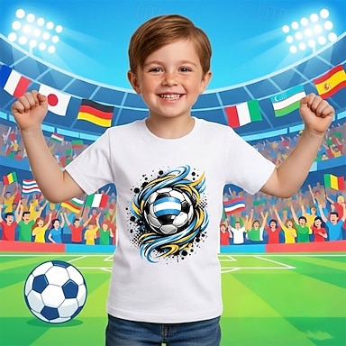 100% Coton Enfants Garçons Blanche Graphique Football T-shirts de football T-shirt Chemisier Col Rond Manche Courte Extérieur Tenue Quotidienne Mode Streetwear Designer Impression Été