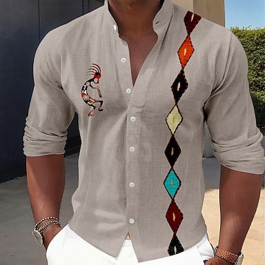 Homme Ethnique Culture indienne Kokopelli Chemise Chemise Boutonnée Chemise à col montant manche longue Vintage Rétro Quotidien Extérieur Vacances Printemps Automne Col mandarin Band Collar