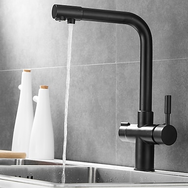 robinet de cuisine eau purifiée robinets à double bec mélangeur d'évier monté sur le pont, robinet en laiton à double poignée rotative à 360 degrés