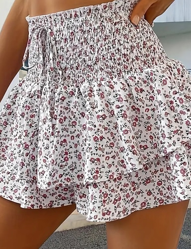 Femmes Shorts Vacances Streetwear Occasionnel Court Taille moyenne Fleuri Taille Élastique Impression Confortable Micro-Élastique Quotidien Extérieur Vacances Bleu Chameau Blanche Rose Été Printemps