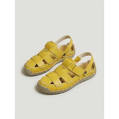 Sandales gladiateur jaunes pour femmes – modèle tressé à bout fermé, sandales de pêcheur décontractées et respirantes, idéales pour la marche et les voyages. &vêtements de tous les jours