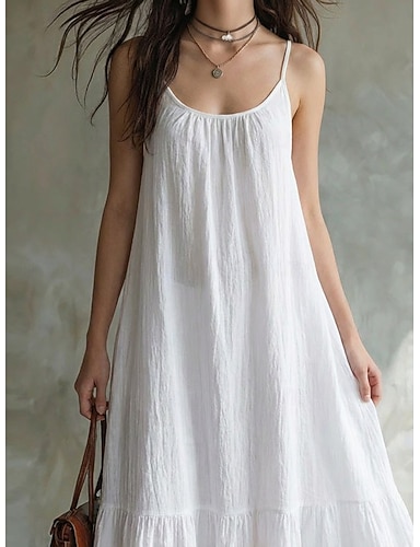 Femmes Robe Midi Faux coton lin Robe fourreau Robe d'Été Robe Nuisette Mode Moderne Quotidien Extérieur Vacances Coupe Ample Uni Sans manches Bretelles Noir Blanche Violet Bleu clair Été Printemps