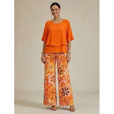 Femmes Ensembles de Pantalons Manche Courte Demi Manches Papillon Col rond Fleuri Graphique Élégant Vacances Occasionnel Quotidien Vacances Orange Vert Beige Printemps & Été Coupe Ample