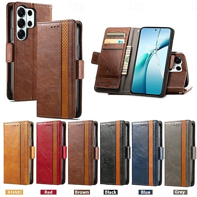 téléphone Coque Pour S26 Ultra Plus S25 S24 S23 S24 FE S22 S21 Ultra Plus A55 5G A35 5G A25 Coque Arrière avec Support Emplacement Carte Antichoc Rétro faux cuir