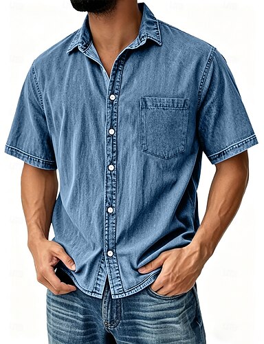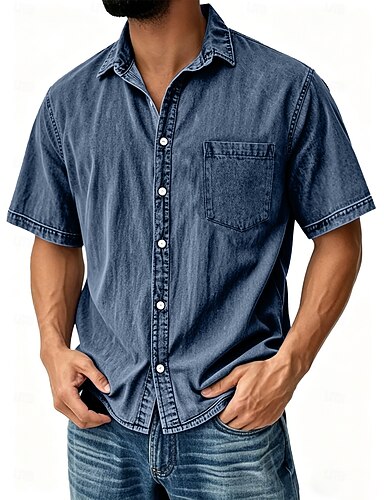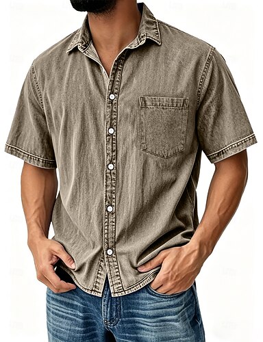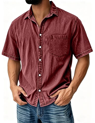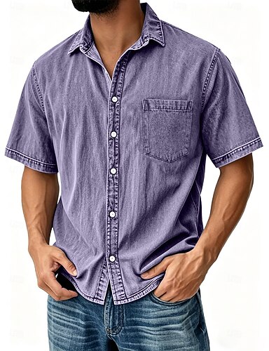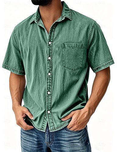 Homme Chemise Chemise Décontractée Chemise Boutonnée Chemise 100% coton délavée à l'acide Noir Vert Claire bleu marine Violet Vert Manche Courte Uni Col de chemise Occasionnel Quotidien Poche Avant