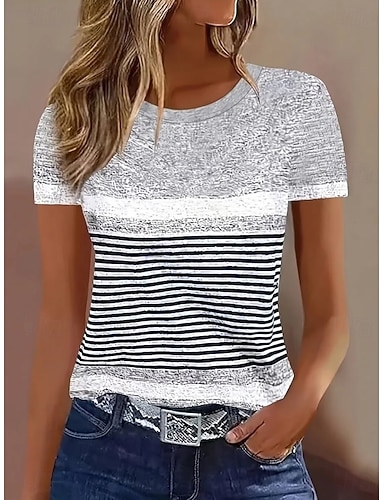 Femmes T-shirt Bloc de Couleur Imprimé Graphique Géométrique Rayé ancien Mode Élégant Manche Courte Col ras du cou Hauts Réguliers Quotidien Bleu Jaune Marron Gris Été Printemps