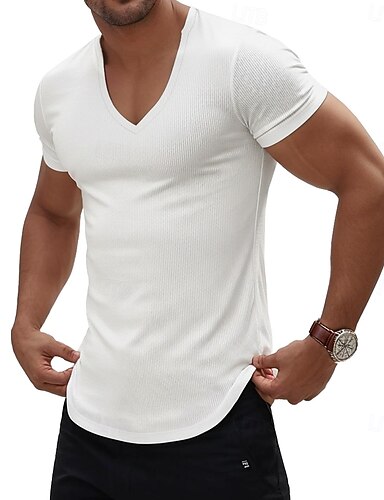 Homme T-shirt Débardeur Musclé T-shirt en tricot côtelé Manches courtes Col en V Été Printemps Toutes saisons Uni Designer Basique Moderne Contemporain A côtes Occasionnel Vacances Rue Noir Blanche