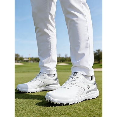 Chaussures de golf blanches pour hommes – en similicuir respirant, confortables, idéales pour le golf, la marche et les sports de plein air