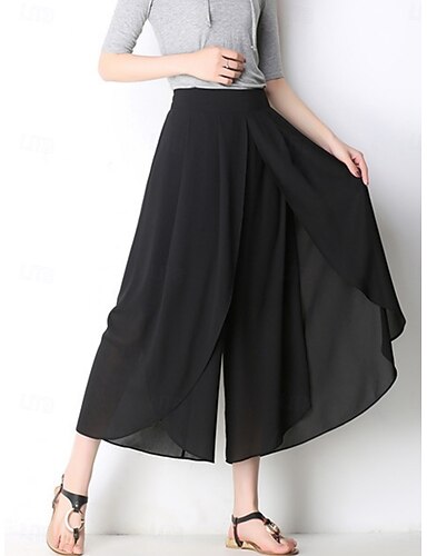 Femmes Pantalons Pantalon décontracté Pantalon d'été Pantalons de Plage Vacances Mode Décontracté Quotidien Longueur complète Taille Moyenne Couleur Unie Uni in in france they say Pontalon wide leg