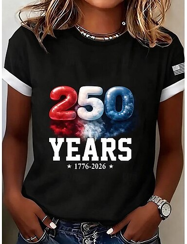 Jour de l'Indépendance Américaine Femmes T-shirt Imprimé Graphique Lettre Drapeau Américain ancien Élégant Classique Manche Courte Col ras du cou Hauts Réguliers Quotidien Noir Blanche Été Printemps