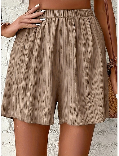Femmes Short gaufré Shorts Shorts d'été Short décontracté Vacances Mode Streetwear Court Taille haute Uni Avec Poches Taille Élastique Confort Doux Confortable Micro-Élastique Extérieur Rue Fête Noir