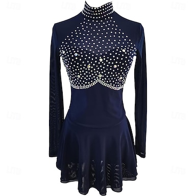 Robe de patinage artistique Fille Patinage Robe Violet Bleu marine Noir Patchwork Dos Nu Haute Élasticité Entraînement Compétition Tenue de Patinage Classique cristal pailleté manche longue Patinage
