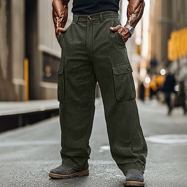 Homme Pantalon en velours côtelé Pantalons Pantalon décontracté Cordon de serrage Taille Élastique Multi-poches Uni Confort Sport en Plein Air Quotidien Mode Occasionnel Noir Vert Véronèse