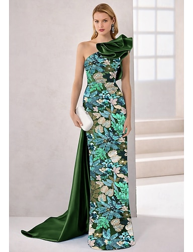 Fourreau Colonne Longueur au sol Broderie perlée Robe de Cérémonie Robe de la mère de la mariée Robe de Soirée Robe de bal avec surjupe Tenue de soirée Élégant Scintillant Éclat Sans manches Une