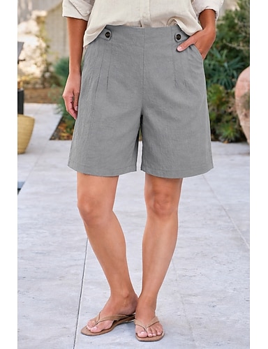 Femmes Faux coton lin Chinos Shorts Shorts d'été Vacances Streetwear Décontracté Quotidien Longueur Genou Taille moyenne Uni Avec Poches Confortable Respirant Non Elastique Quotidien Extérieur Bureau