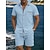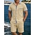 Hommes Chemise en lin Deux pièces Ensemble Chemise Et Shorts en Lin Shorts de plage Set Rayé Occasionnel Quotidien Extérieur Col Rabattu Manche Courte Été Mode Occasionnel Confortable Vêtement Tenue