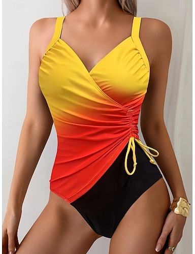 Maillot de bain une pièce femme amincissant monokini culottes contrôle du ventre taille haute mince dos nu vacances vintage ombre graphique décolleté en U sans manches
