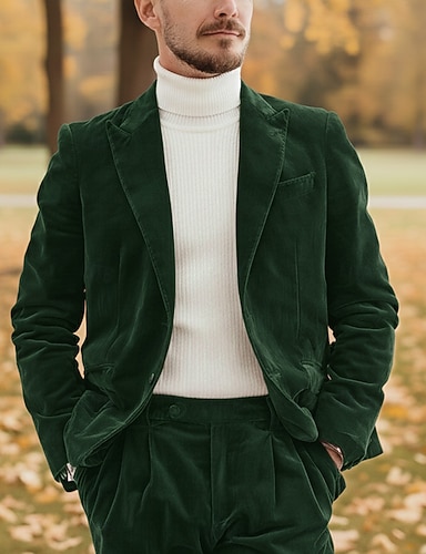 Pour des hommes Costume en velours côtelé Soirée Noir Rouge Bordeaux Automne & Hiver Costume / Tailleur Revers Cranté Mode Occasionnel Couleur Unie Coupe sur mesure 2 pièces Simple Boutonnage Deux