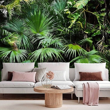 Tapisserie murale représentant une grotte et une cascade, un paysage naturel tropical, une jungle verte et une forêt zen, idéale pour la décoration du salon et de la chambre.