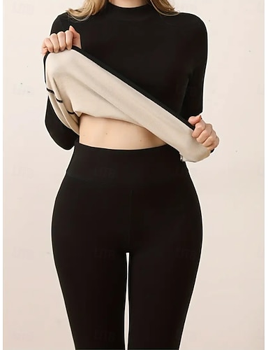 Femmes Sous-vêtements Thermiques Ensemble Pyjama Occasionnel Confort Couleur Unie Taille Élastique Pantalon Maison Quotidien manche longue Col ras du cou Noir Rose Claire Rouge Violet Kaki Printemps