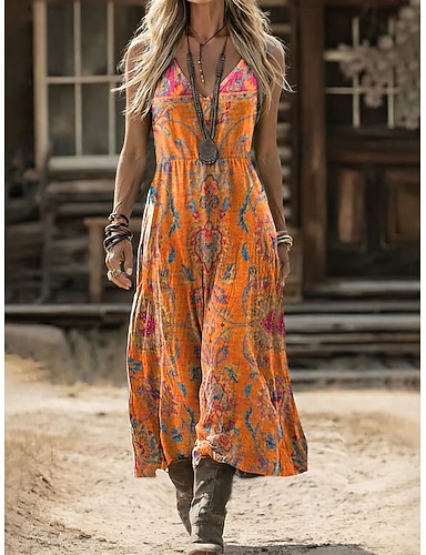 Femmes Robe maxi Robe d'Été Robe trapèze Robe Nuisette Vacances Occasionnel Plage Sortir Coupe Ample Graphique Paisley Tribal Sans manches Col en V Vert Été Printemps