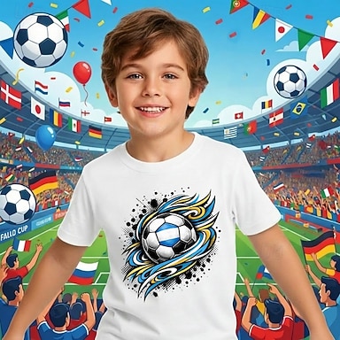 100% Coton Enfants Garçons Blanche Graphique Football T-shirts de football T-shirt Chemisier Col Rond Manche Courte Extérieur Tenue Quotidienne Mode Streetwear Designer Impression Été