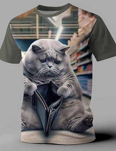 Homme Chat Drôle T-shirt Manche Courte T-shirt Impression 3D Col ras du cou Chemise Exagéré Designer Soirée Fête Gris Été Printemps Vêtement Tenue S M L XL XXL XXXL