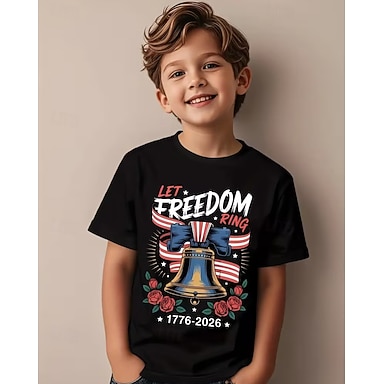 100% Coton Enfants Garçons Noir Graphique Drapeau des États-Unis 250e anniversaire T-shirt Chemisier Col Rond Manche Courte Extérieur Tenue Quotidienne Mode Streetwear Designer Impression Été