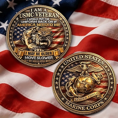 Je suis un ancien combattant du Corps des Marines des États-Unis. Pièce commémorative, médaille Semper Fidelis, cadeau patriotique avec emblème du bouledogue, drapeau américain, honneur, service et
