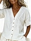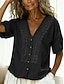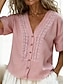 Femmes Chemise Chemisier Hauts en dentelle Chemise en faux lin Broderie Boutons Uni Élégant Classique Moderne Manche Courte Col en V Hauts Réguliers Quotidien Fête Sortir Bleu Noir Blanche Rose Claire