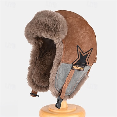 Homme Trappeur Chapeaux d'Hiver Noir Kaki faux cuir Toison Mode Moderne Contemporain Tenue quotidienne Date Couleur Unie / Unie Chaleur Thermique Coupe-vent