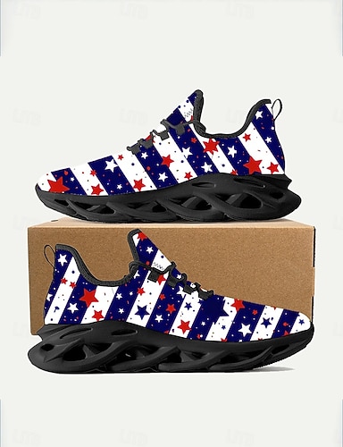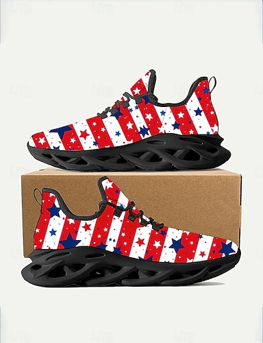 Baskets graphiques à enfiler imprimé drapeau USA pour femmes - Chaussures de sport décontractées respirantes et rembourrées style sportif patriotique pour parades USA voyage et usage quotidien