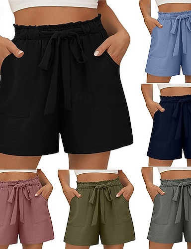 Femmes Chinos Shorts Vacances Streetwear Occasionnel Court Taille moyenne Uni Cordon de serrage Avec Poches Taille Élastique Confortable Respirant Micro-Élastique Quotidien Extérieur Vêtements de rue