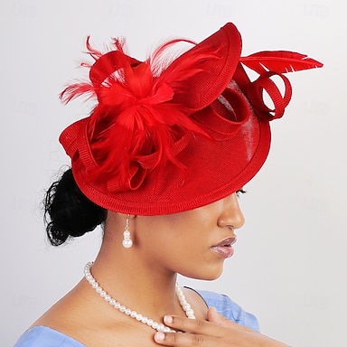 Fascinateurs Polyester Plume Artificielle Voile Chapeau Formelle Élégante Avec Accessoire en Plume Tête Chapeaux Fascinateurs Jour de Course Robe