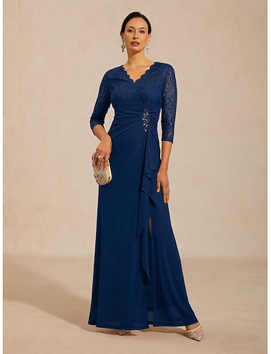 Fourreau Colonne Longueur cheville Robe de Soirée Robe de Cocktail Robe d'invité de mariage Robe de Mère de Mariée manche longue Col en V Élégant Soirée Formelle Fête de mariage avec Appliques