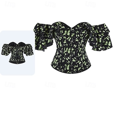Rococo Corset Overbust Bal Masqué Corset Serre Taille Cosplay Paillettes Contrôle du ventre Faire monter Jacquard Déguisement Femmes Royal Mascarade Soirée Carnaval de Venise Adulte Corset