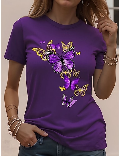 Femmes T-shirt Imprimé Graphique Animal Papillon ancien Élégant Classique Manche Courte Col ras du cou Col rond Hauts Réguliers Quotidien Week-end Blanche Rose Claire Bleu Ciel Violet Claire Violet