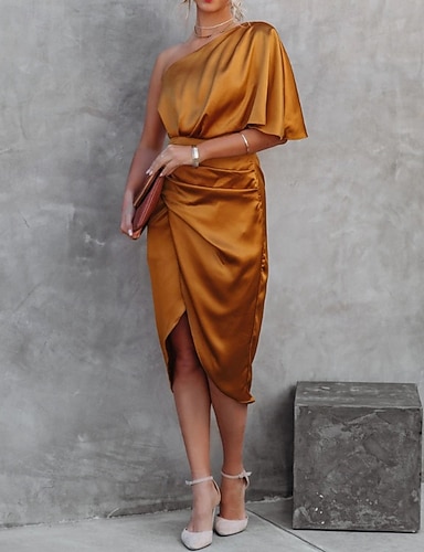 Femmes Mini Robe Robe en Satin Robe de Bal Robe de Soirée Robe de Cocktail Élégant Moderne Soirée Cocktail Mince Uni Demi Manches Une Épaule Noir bleu marine Orange Dorée Été Printemps