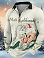 Noël Homme père Noël Polos Polos de golf manche longue Polos Col Décontractées Tenue de soirée Quotidien Vacances Boutons Impression 3D Blanche