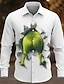 Noël Homme Noël drôle Mur fissuré Chemise Chemise Boutonnée manche longue Drôle Extérieur Fête Printemps Automne Col Rabattu Impression 3D chemises à col Blanche Vert