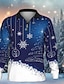 Noël Homme Père Noël Bonhomme de neige Renne Chemise Chemise Boutonnée manche longue Drôle Extérieur Fête Printemps Automne Col Rabattu Impression 3D chemises à col Bleu Rouge