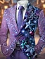 Noël Homme Imprimé Veste blazer Manteau Confortable Respirant Artistique Occasionnel Tenue de soirée Quotidien Festival Impression 3D Boutons Toutes saisons Cranté manche longue Violet Vert