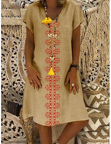 Femmes Robe Midi Faux coton lin Robe fourreau Robe Décontractée Robe d'été Mode Moderne Quotidien Plage Week-end Coupe régulière Fleuri Manche Courte Col ras du cou Bleu Blanche Rouge bleu marine Été