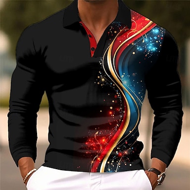 Homme Abstrait Géométrique Polo manche longue Polos Chemises à Col Vêtement décontracté de travaile Affaires Athleisure Tenue quotidienne Impression 3D Boutons Printemps Automne Hiver Rouge Bleu Vert