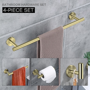 Barre porte-serviette / Porte Papier Toilette / Crochet à Peignoir Design nouveau / Créatif contemporain / Moderne Acier inoxydable / Acier inoxydable / fer / Métal 4pcs - Salle de Bain Montage mural