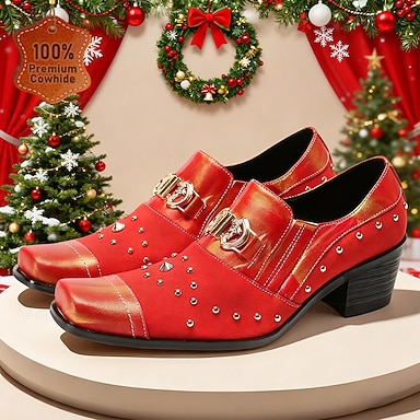 Mocassins pointus en cuir véritable rouge pour homme, avec détails complexes – chaussures de Noël élégantes pour événements formels et semi-formels